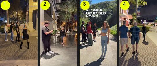 Here's the setup: you walk past a group of strangers, do something to make them look at you, then hit them with the “Obsessed” audio like they just couldn't help themselves.